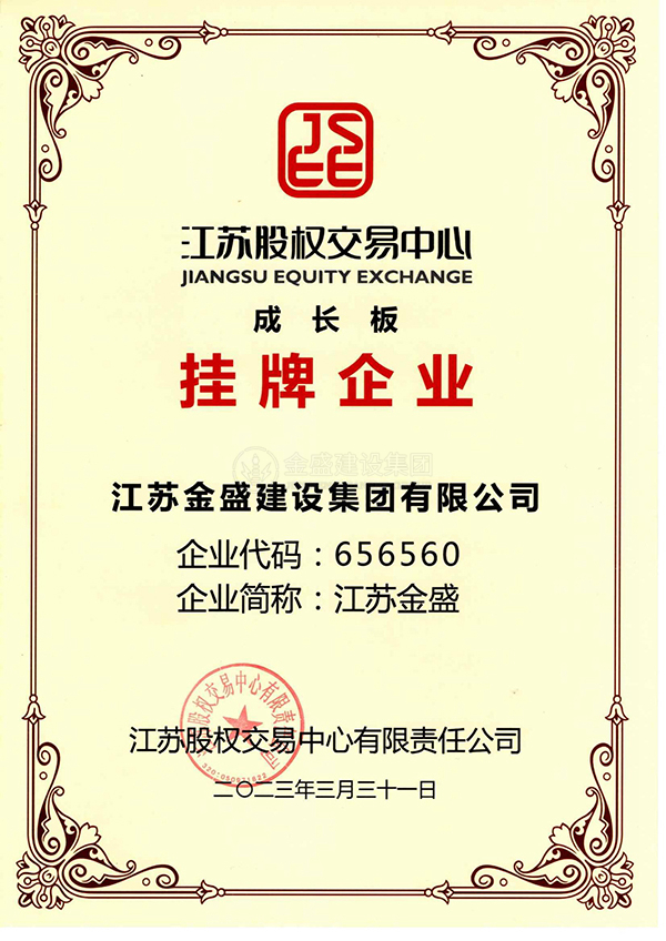 江蘇股權(quán)交易中心成長(zhǎng)板掛牌企業(yè)資質(zhì)證書(shū)